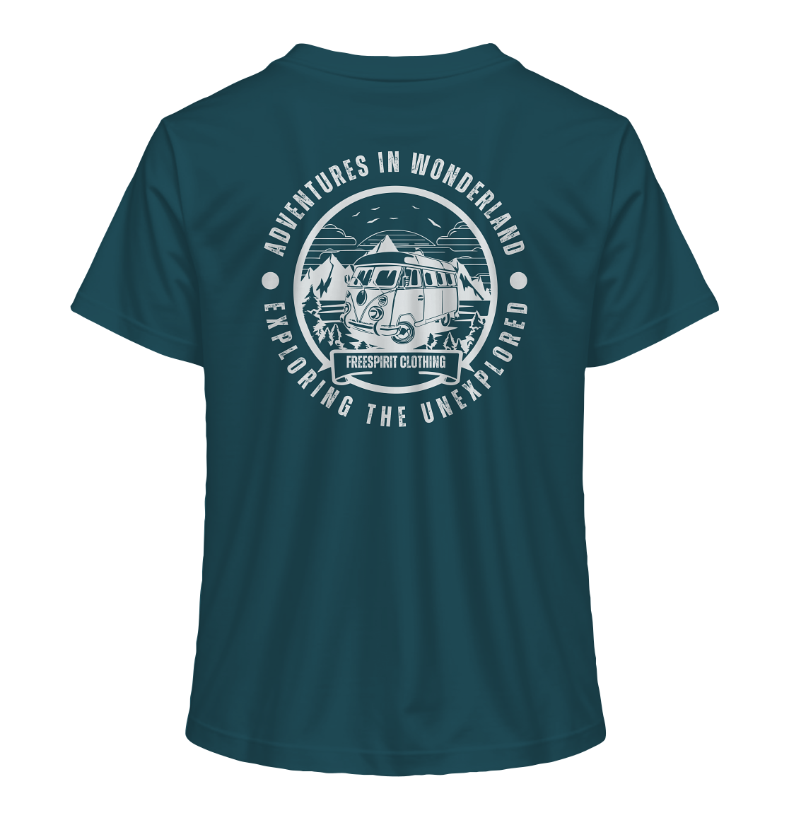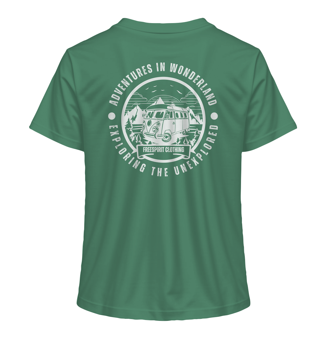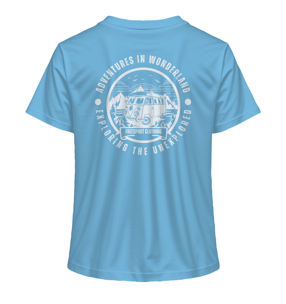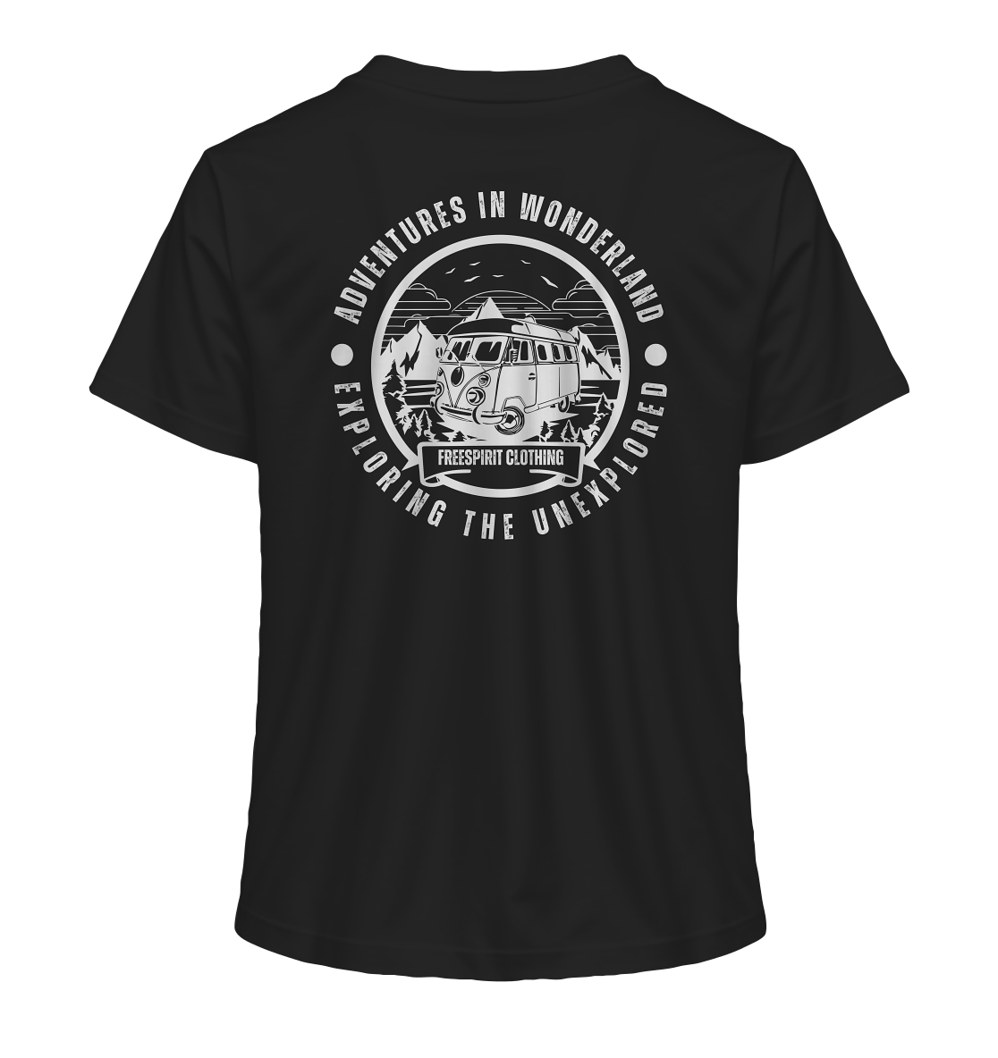 Embark on an unforgettable journey with our unique "Adventures in Wonderland" design! This captivating motif combines a stylish vintage camper with an impressive mountain landscape and an inspiring message. It embodies the joy of discovery and the freedom of travel.